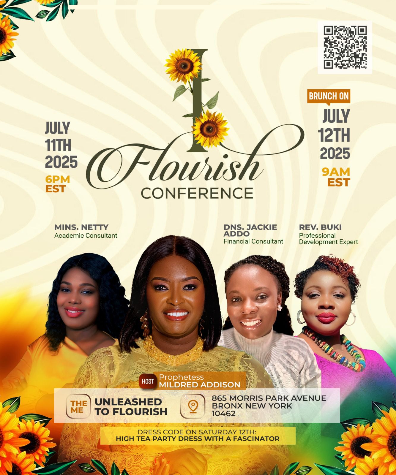 Hosted by the dynamic Prophetess Mildred Addison, the I Flourish Conference 2025 is set to empower, equip, and elevate women into their divine purpose. Scheduled for July 11–12, 2025, in Bronx, New York, this two-day experience promises to be more than just an event—it’s a movement of women rising to flourish in faith, purpose, and professional life.